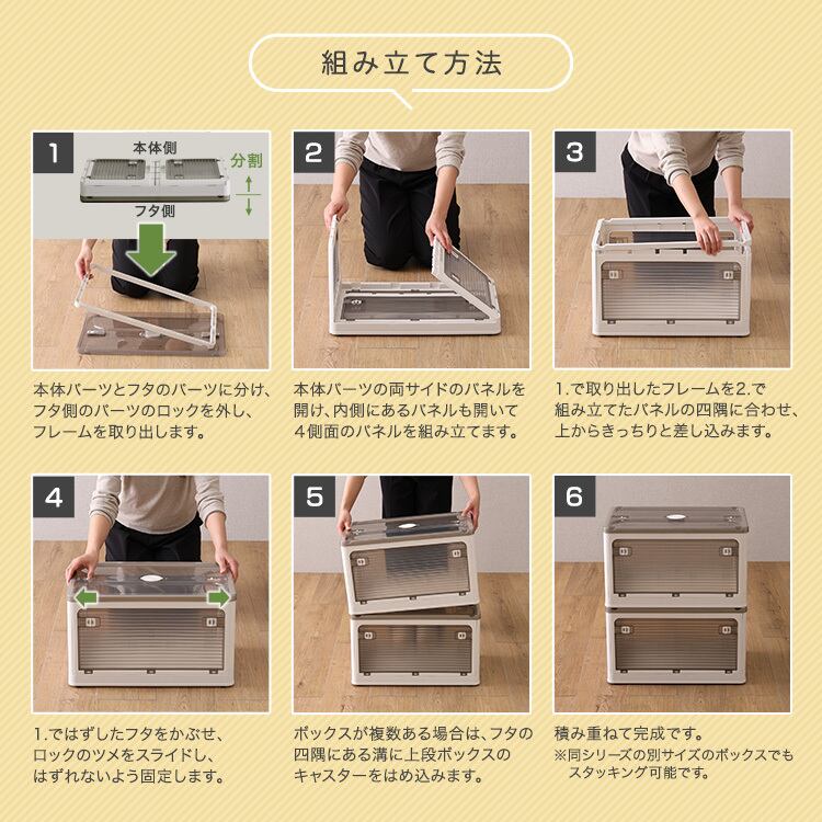 5面開きができる! 折りたたみ収納ボックス Mサイズ 40L コンテナボックス 収納