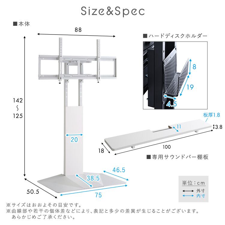 【商品サイズ】テレビスタンド:(約)幅88×奥行50.5×高さ125~142cm