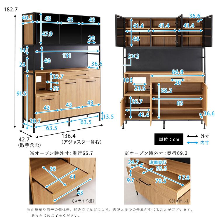 【商品サイズ】(約)幅136.4×奥行42.7×高さ182.7cm