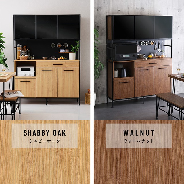 ヴィンテージ調マグネットワイド食器棚 ブラックガラス【GREACK-グリック-】?