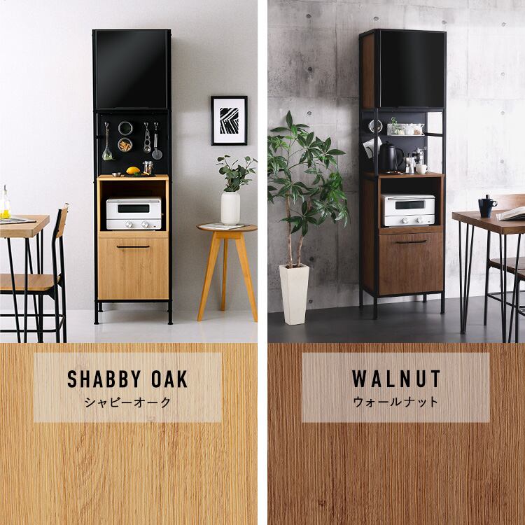 ヴィンテージ調マグネットスリム食器棚 ブラックガラス【GREACK-グリック-】