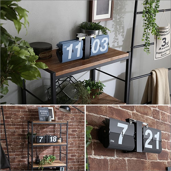 シンプル&レトロデザイン フリップクロック 置き壁掛け兼用 インテリア 時計 置き時計 壁掛け