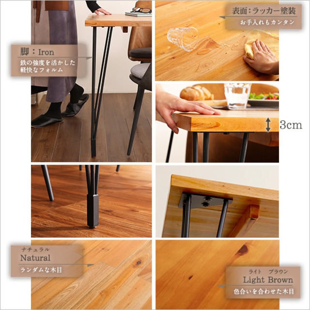 天然木(パイン) ラッカー塗装 アイアン(粉体塗装)