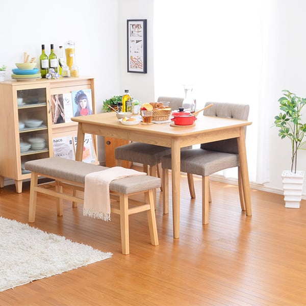 ダイニング4点セット-Rampo-ランポ 伸縮テーブル幅120-150ベンチ&チェア ダイニング