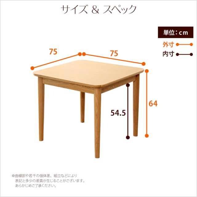 ダイニングテーブル単品 幅75cm ナチュラルロータイプ 木製アッシュ材Risum-リスム-インテ