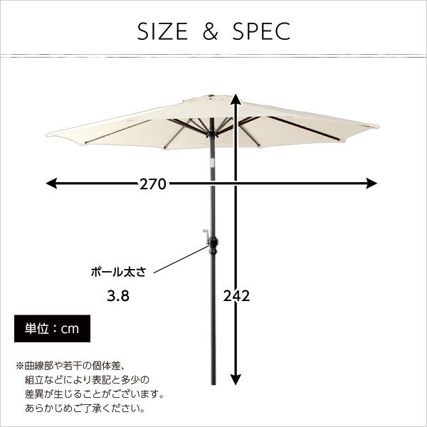 完成品 オープンカフェ風パラソル 270cm パラソル 撥水 アルミ