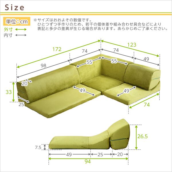 コーナー:(約)幅74x奥行き74x高さ33cm(座面高:7.5cm)