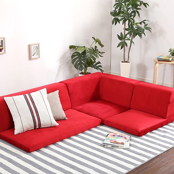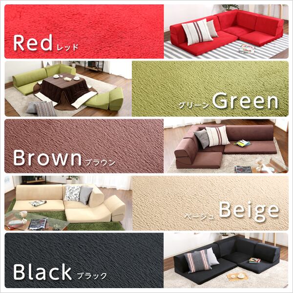 フロアソファ 3人掛け ロータイプ 起毛素材 日本製 5色 組み替え自由Luculia-ルクリア