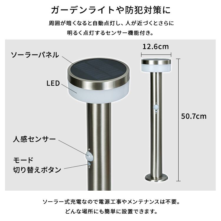 工事不要!ガーデンソーラーセンサーライト 2W丸型