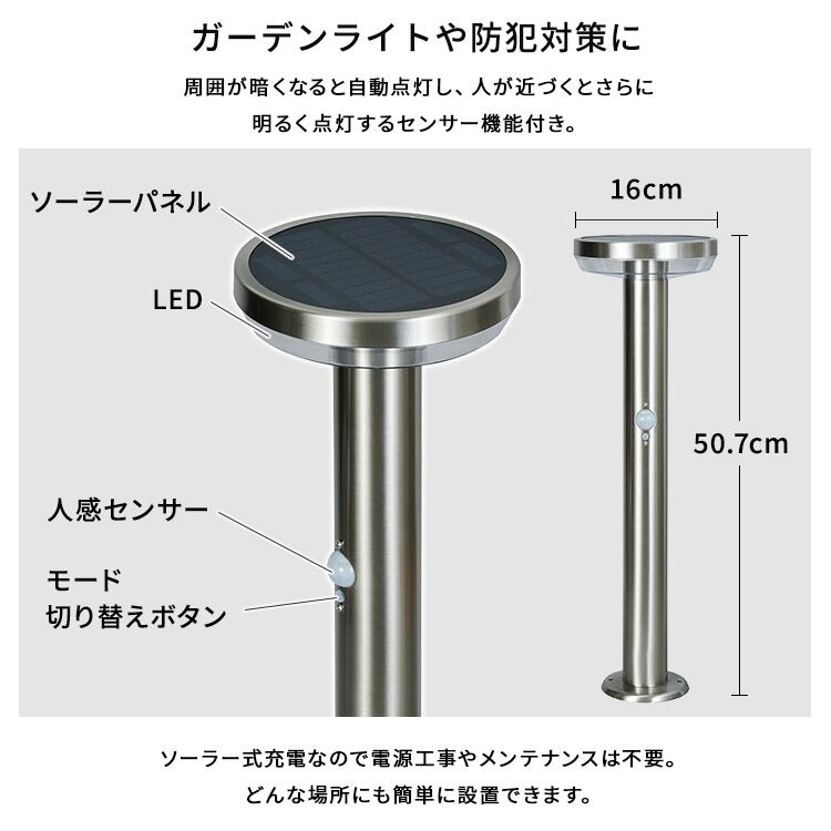 工事不要!ガーデンソーラーセンサーライト 5W丸型