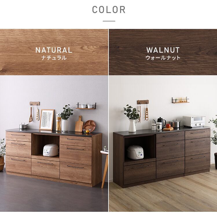 日本製 特殊鋼板を使った組み合わせキッチンカウンター 180cm オープン収納+引き出し収納+引き出し収納