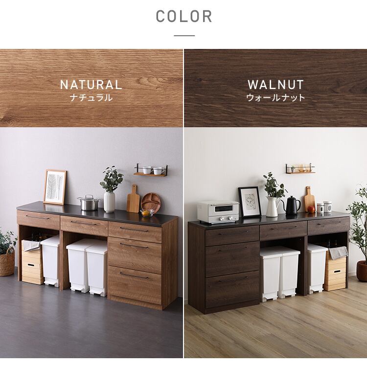日本製 特殊鋼板を使った組み合わせキッチンカウンター 180cm ゴミ箱上カウンター+ゴミ箱上カウンター+引き出し収納