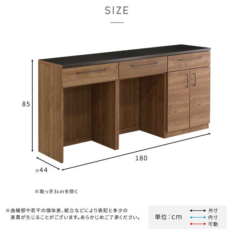 天板:(約)W185×D47.5×H6.5cm