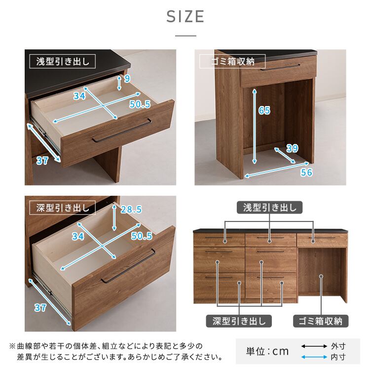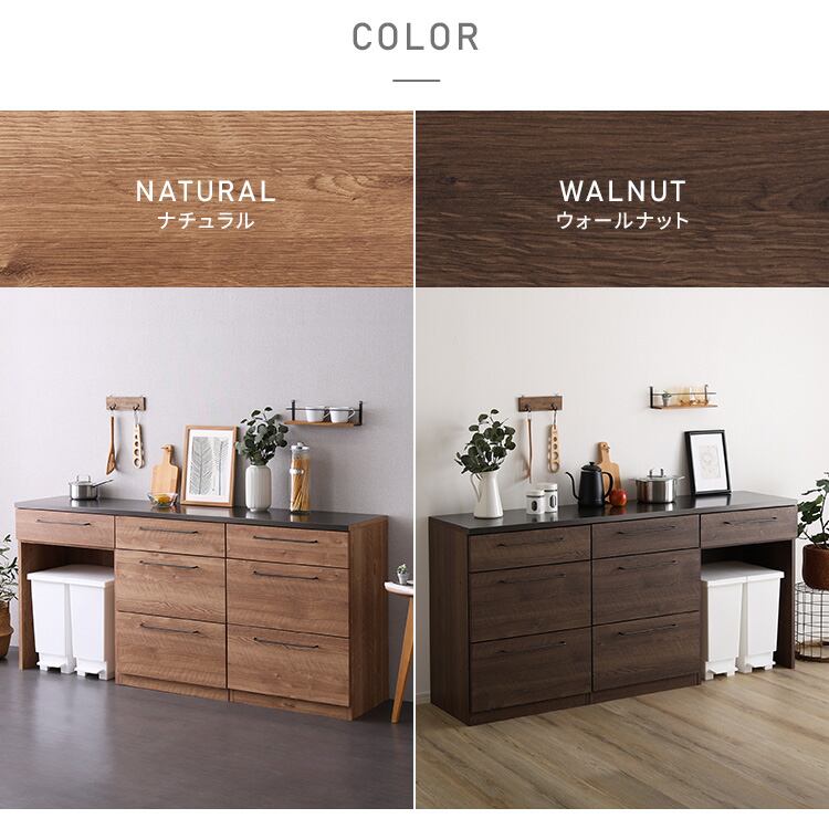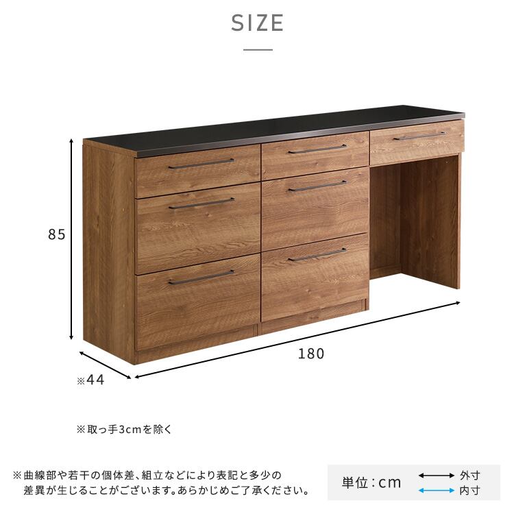日本製 特殊鋼板を使った組み合わせキッチンカウンター 180cm ゴミ箱上カウンター+引き出し収納+引き出し収納