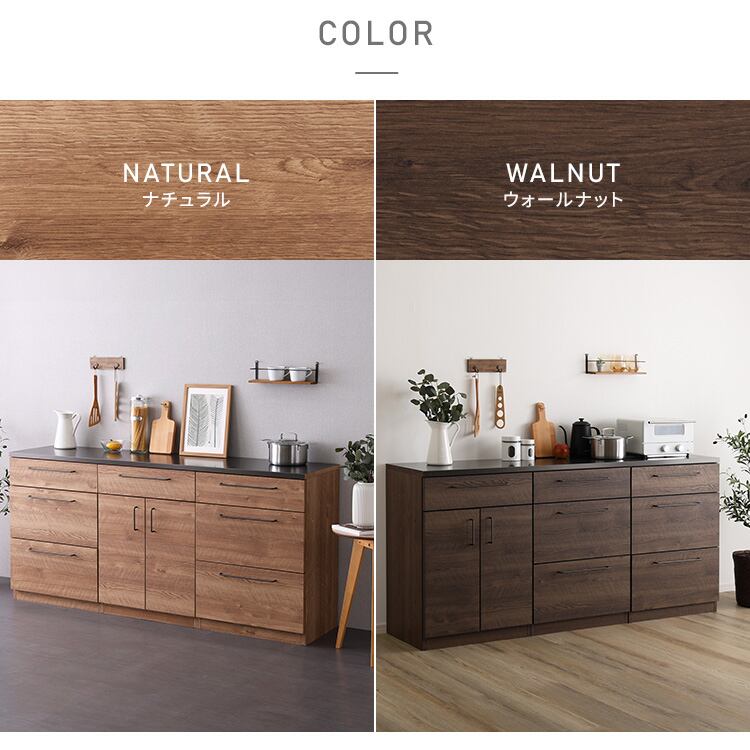日本製 特殊鋼板を使った組み合わせキッチンカウンター 180cm 引き出し収納+引き出し収納+扉収納