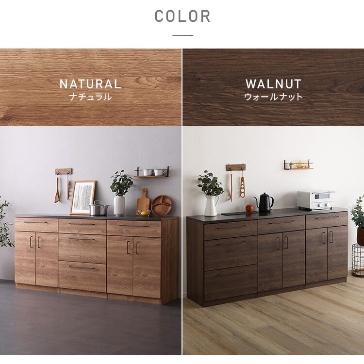 日本製 特殊鋼板を使った組み合わせキッチンカウンター 180cm 引き出し収納+扉収納+扉収納