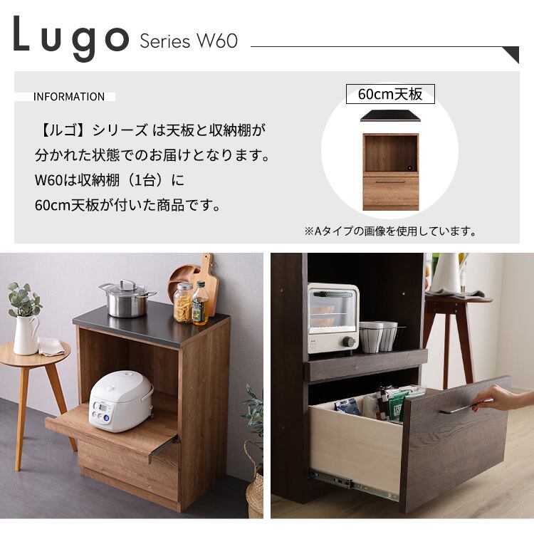 日本製 特殊鋼板を使ったキッチンカウンター【Lugo-ルゴ-】オープン収納 60cm