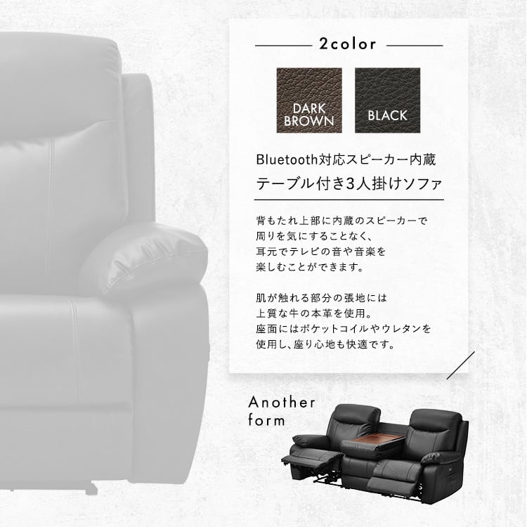 Bluetooth対応スピーカー内蔵 3人掛け本革ソファ テーブル付 【Laguna-ラグナー】