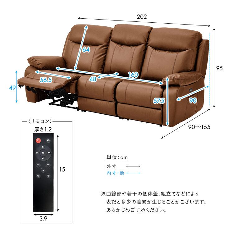 (約)幅202×奥行き90〜155×高さ95(座面高さ49)cm