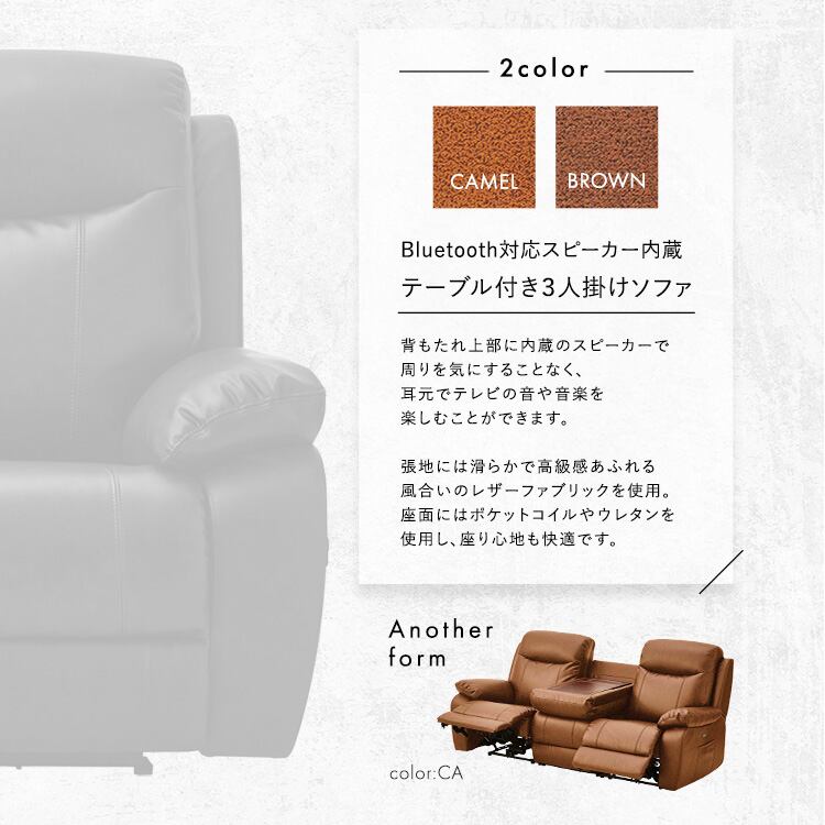 Bluetooth対応スピーカー内蔵 3人掛けレザーファブリックソファ テーブル付き 【Laguna-ラグナー】