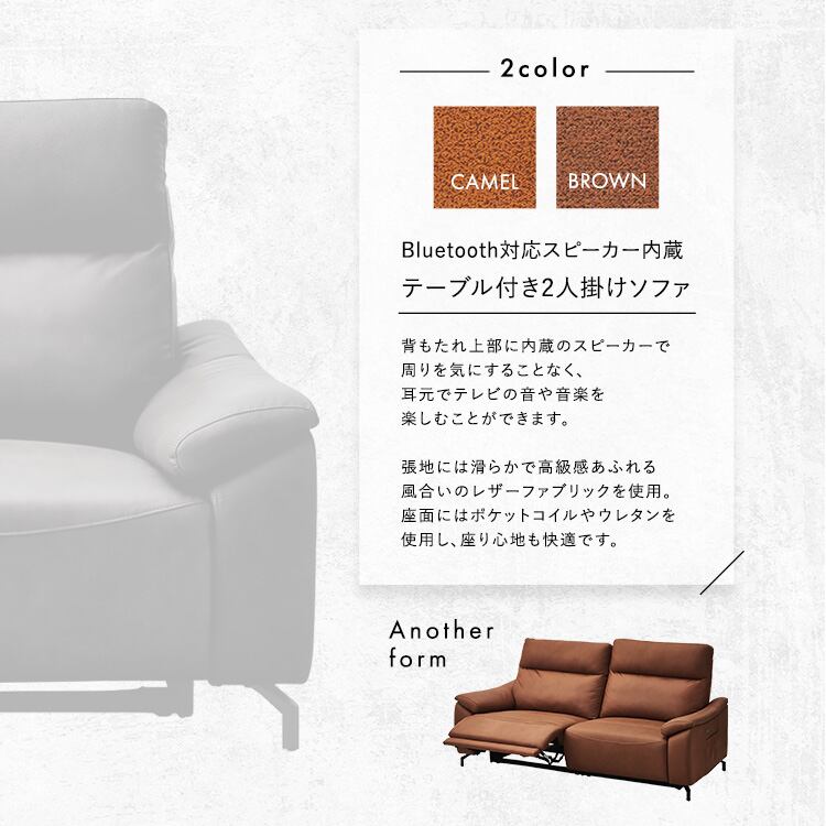 Bluetooth対応スピーカー内蔵 2人掛けレザーファブリックソファ 【Monarque-モナーク-】