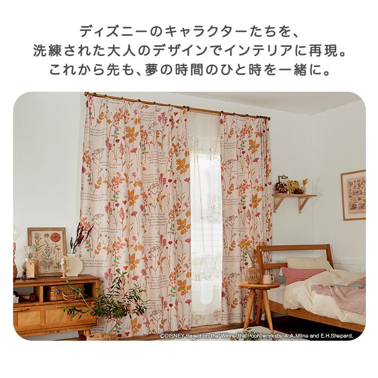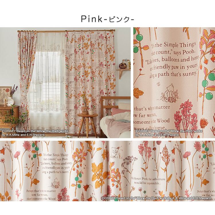 DISNEY/ディズニー ドレープカーテン 100×178cm×1枚 アイボリー ピンク