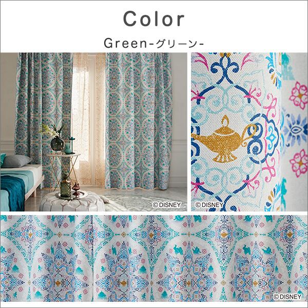 DISNEY/ディズニー ドレープカーテン 100×135cm×1枚 グリーン ピンク