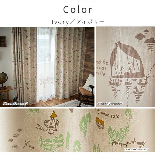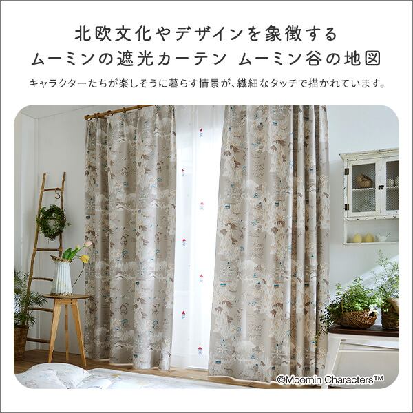 MOOMIN/ムーミン ドレープカーテン 100×178cm×1枚【ムーミン谷の地図】