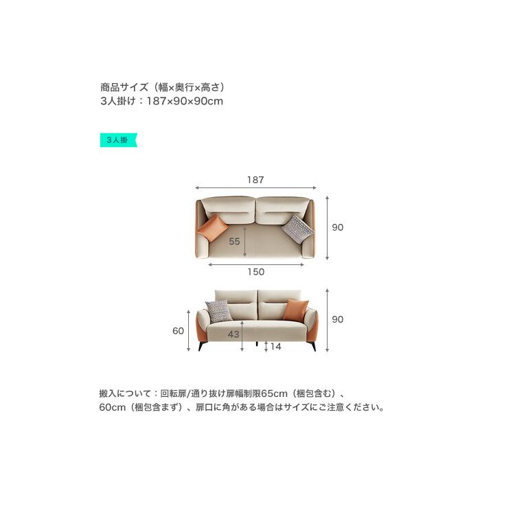 テクスチャー生地 3人掛けソファ