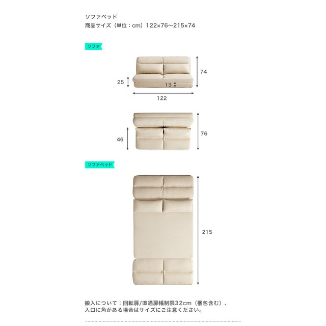 (約)122×76〜215×74cm