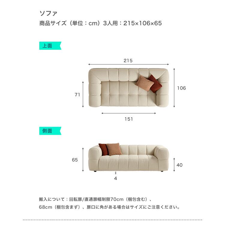 滑らかテクスチャー3人掛けカウチソファ