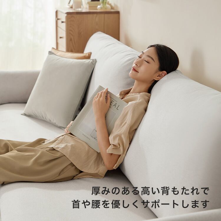 3. 生地:アイボリーのクッションは肌触りの良いテクスチャー生地