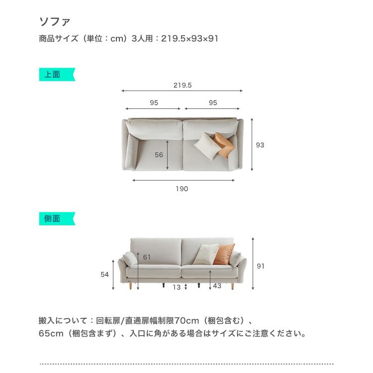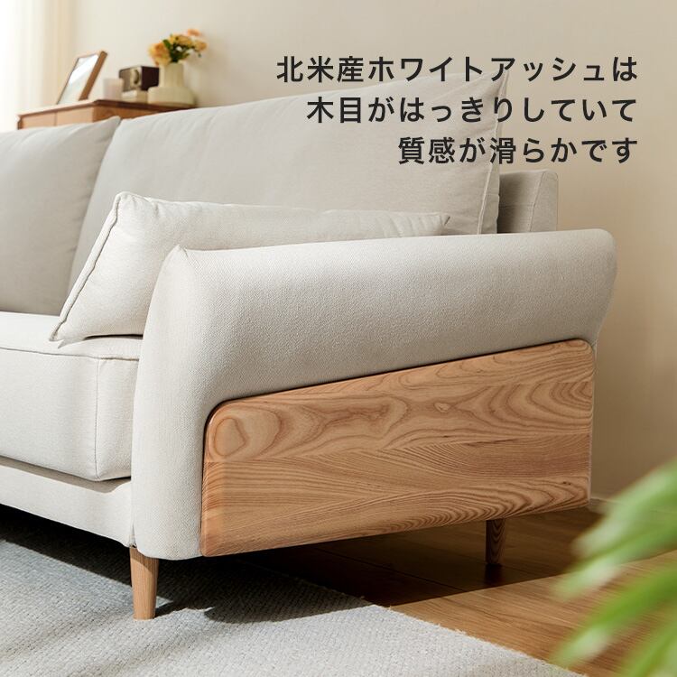 北米産ホワイトアッシュフレーム 3人掛けソファ(ライトグレー)