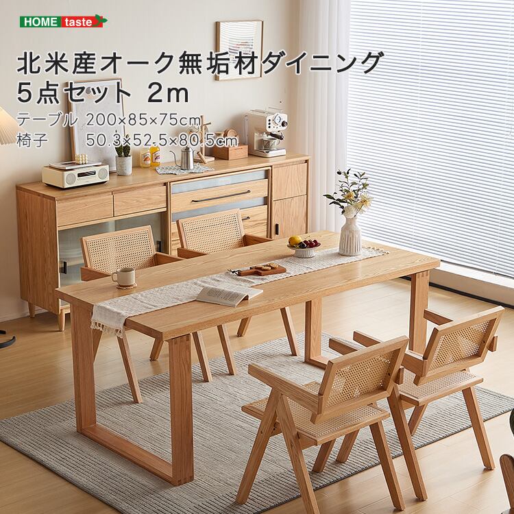 北米産オーク無垢材ダイニング5点セット 2m