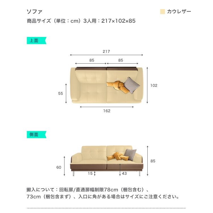 本革カウレザー3人掛けソファ