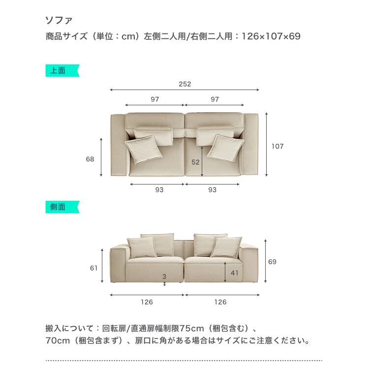 左右2人掛けソファ ラテックスクッション付き