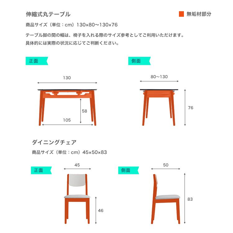 【素材】テーブル 主要材料:ラバーウッド 左脚/右脚/側面補強板:ラバーウッド+メラミン板+天板:天板 椅子 主要材料:ラバーウッド 座面フレーム/前脚 補助材料:ラバーウッド+MDF:背もたれ;MDF+ウレタン+合皮:座面