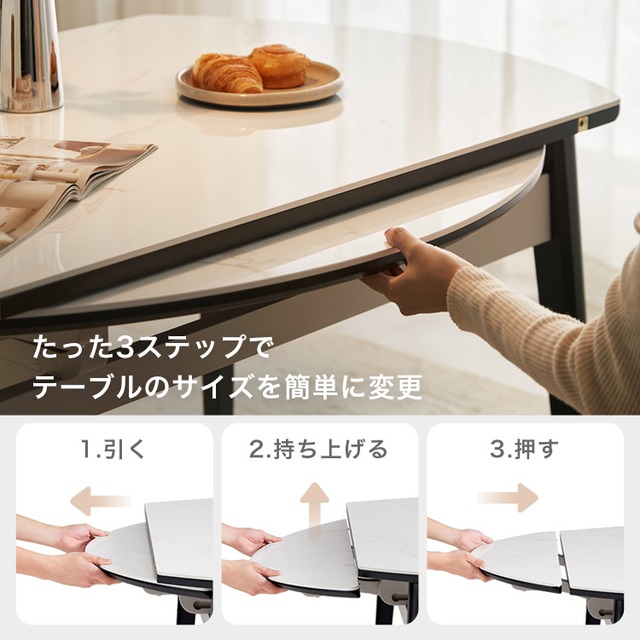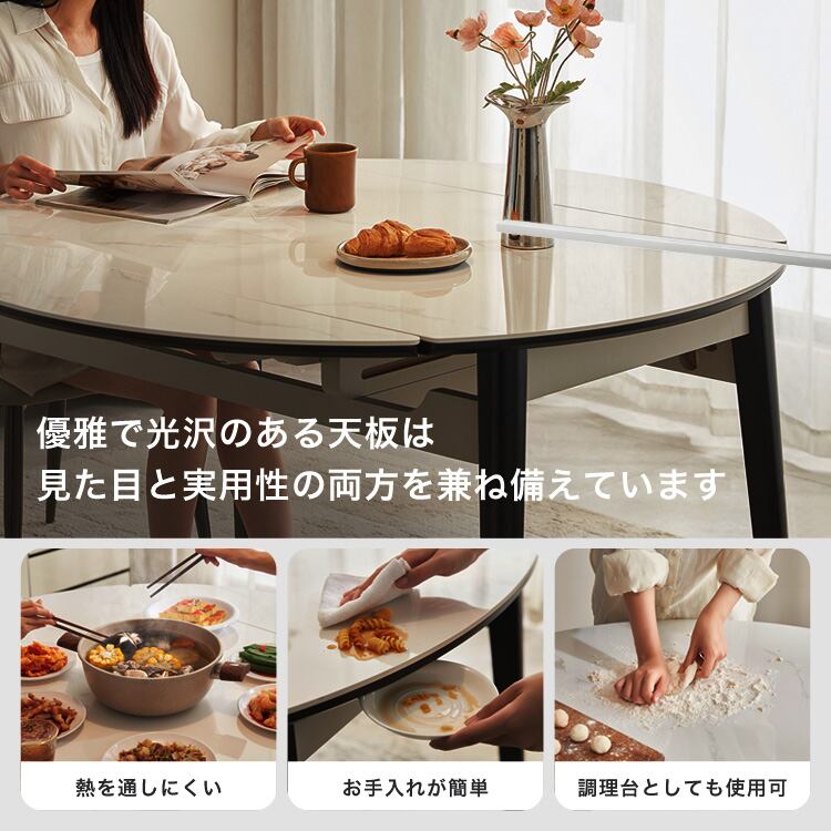 【素材】主要材料 ラバーウッド:左脚/右脚/側面補強 補助材料 ラバーウッド+メラミン板+岩板:組み合わせテーブルフレーム