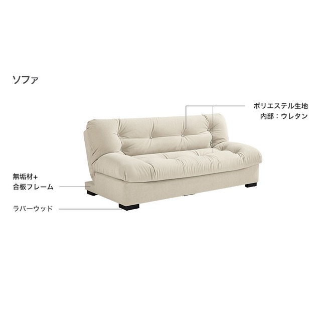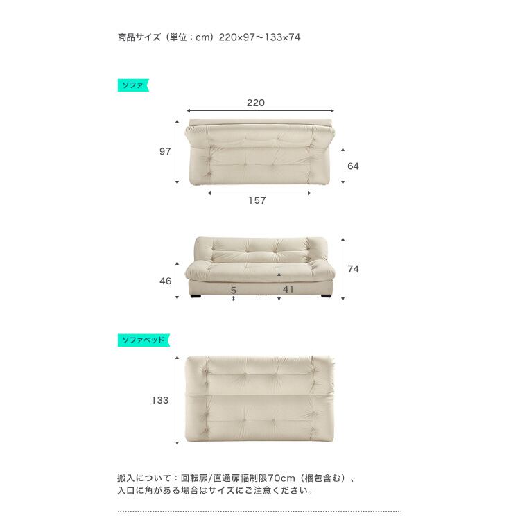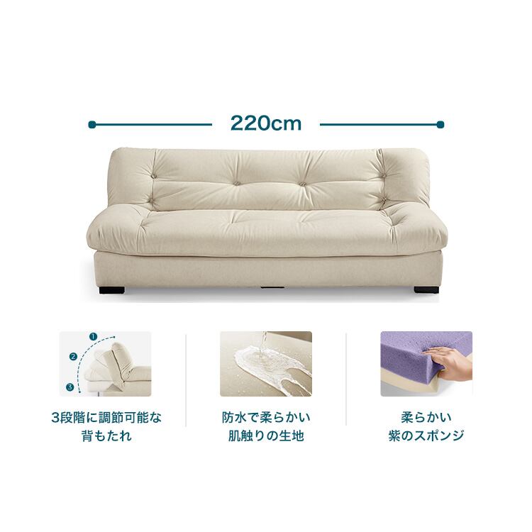 背もたれ3段階調節 大型3人掛けソファベッド