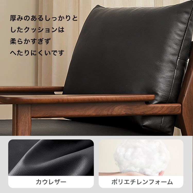 【素材】カウレザー+PVCレザー+合板+ウレタン:座面 カウレザー+ポリエチレンフォーム:背もたれ ウォールナット:本体