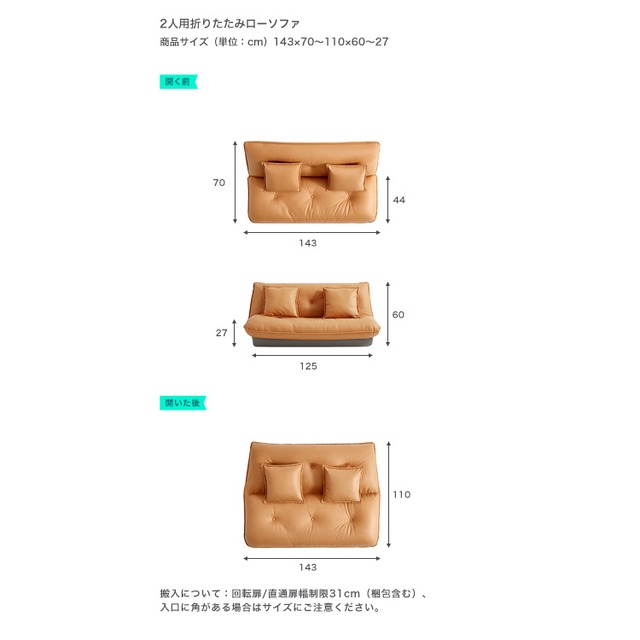 2人用折りたたみローソファ(6段階リクライニング)