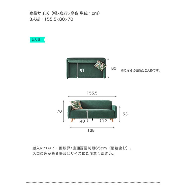無垢材フレーム 組立ソファ 3人掛け