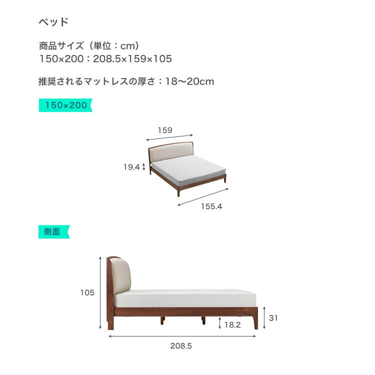ウォールナット&ホワイトベッド 150×200cm ワイドダブル