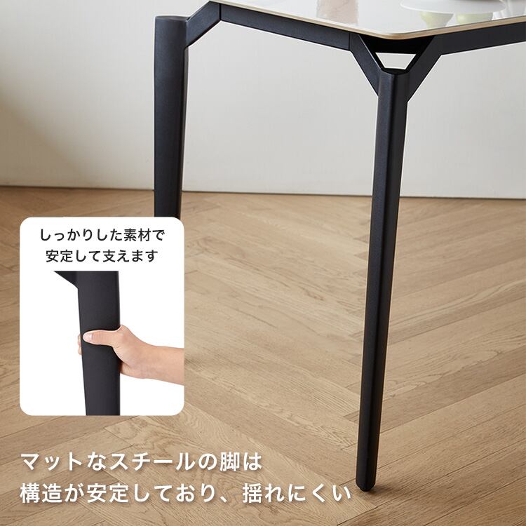 【素材】主要材料 天板:岩板+メラミン板 補助材料 脚/横棒:ブラックスチール
