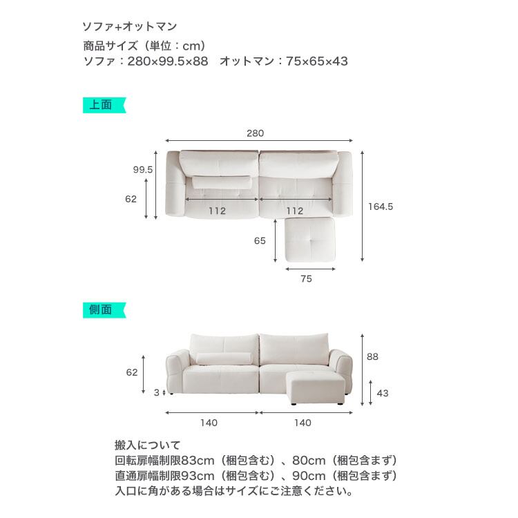ソファ:(約)280×99.5×88cm