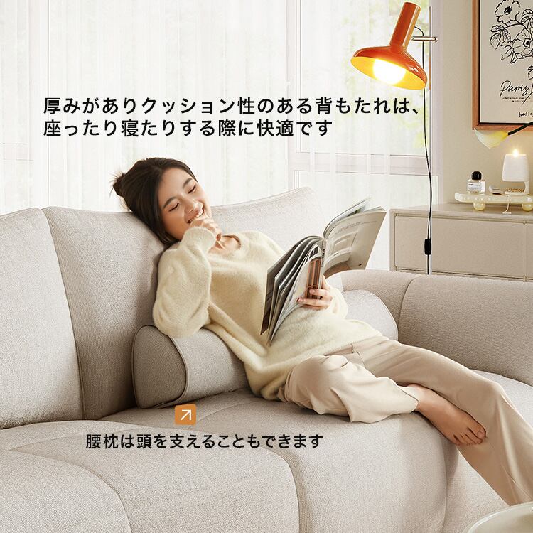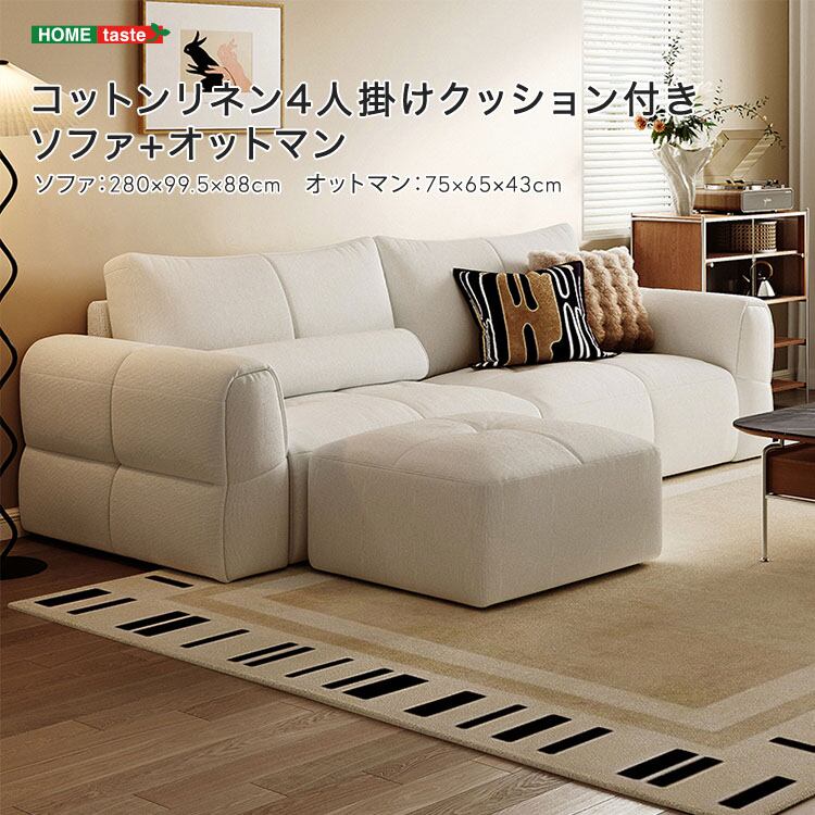 コットンリネン4人掛けクッション付きソファ+オットマン