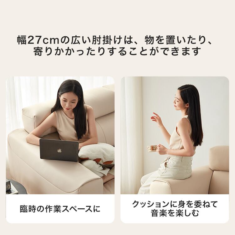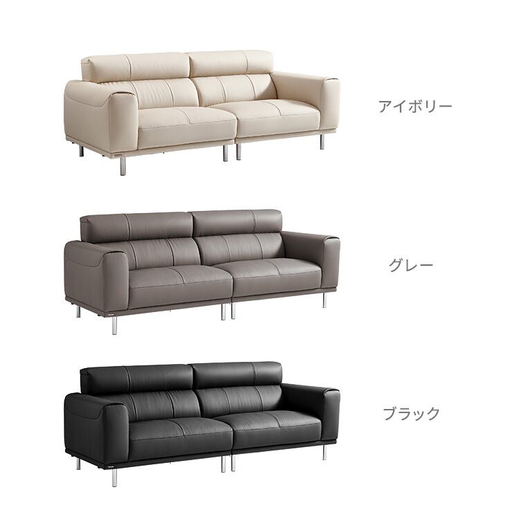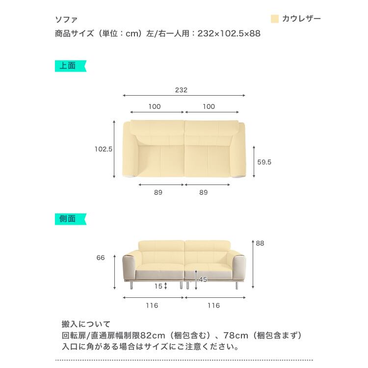 幅広肘掛け 本革カウレザー2人掛けソファ