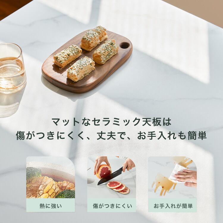 【素材】主要材料 天板/脚:ラバーウッド、天板:岩板