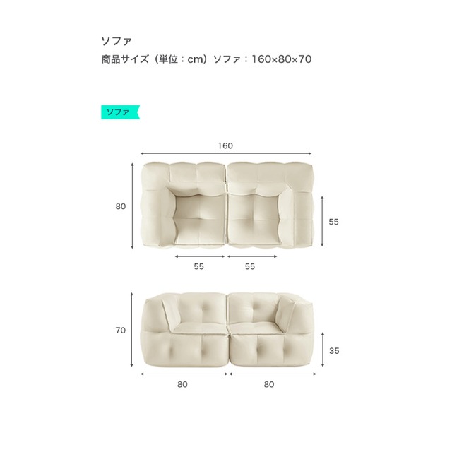柔らかクッション2人掛けソファ
