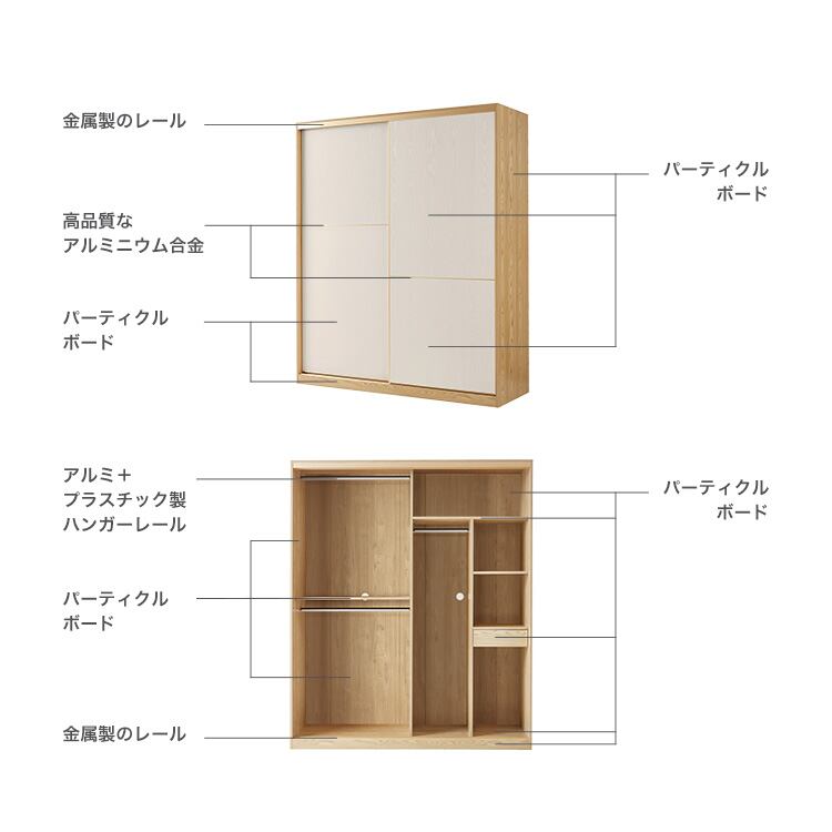 ナチュラル&ホワイト 1.6mスライド扉クローゼット